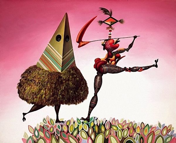 Ivan Generalic’s ‘Crucified Rooster’ is a painting, likely made with oil or egg tempera on glass, a medium associated with the naive art tradition of the former Yugoslavia. The smooth surface and vivid color are characteristic of this technique, but it’s the subject matter that really grabs you. Generalic presents us with a rooster nailed to a cross – a startling image that blends folk symbolism with Christian iconography. Consider the labor involved: not just the artist's hand meticulously applying paint, but the implied work of farming, the life and death cycle represented by the wheat field. The rooster itself, a barnyard animal, becomes a potent symbol of sacrifice. Generalic, who came from a peasant background, often used his art to comment on social issues and rural life. By choosing such humble materials and direct imagery, he elevates the everyday and challenges our notions of what "high" art can be. It's a powerful reminder that art can be found in the most unexpected places and materials.