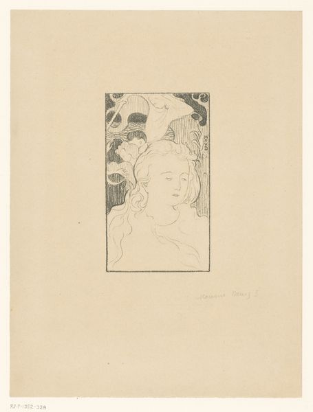 Editor: We are looking at “Kop,” an etching, an intaglio print made by Henri Braakensiek, probably before 1936. The face is so pale, the etching lines so fine; it reminds me of a fading memory. What do you see? Curator: What immediately strikes me is the masterful use of the intaglio technique to render form through tonal variation. Notice how the artist employs delicate lines, seemingly at random, to build up the shadows and volume in the face. The lines are not descriptive but relational; they have a life independent of representing external reality. How would you describe the composition? Editor: Well, it’s quite simple, really. Just the head, enclosed in a square. It makes me think that the shape traps the portrait. But there's an active energy despite that still face. Is this dynamic contrast unique to "Kop"? Curator: Not entirely unique, but exquisitely executed here. The artist contrasts this containment with a remarkable diffusion of light, a carefully calibrated field of illumination that both reveals and conceals. We see form emerge from near abstraction through an interaction between ink and paper. I ask you to think what occurs without lines present: absence itself contributes to the overall aesthetic effect. Editor: It’s as if the light and shadow aren’t just describing a face, but they’re active elements. You know, playing off one another. Thank you! I feel like I'm just beginning to see this print. Curator: Indeed. The essence lies not just in what is depicted but also in how it is depicted, an orchestration of material elements, generating an artwork of considerable formal depth. I, too, feel rewarded in recognizing how a deeper structural understanding expands appreciation.