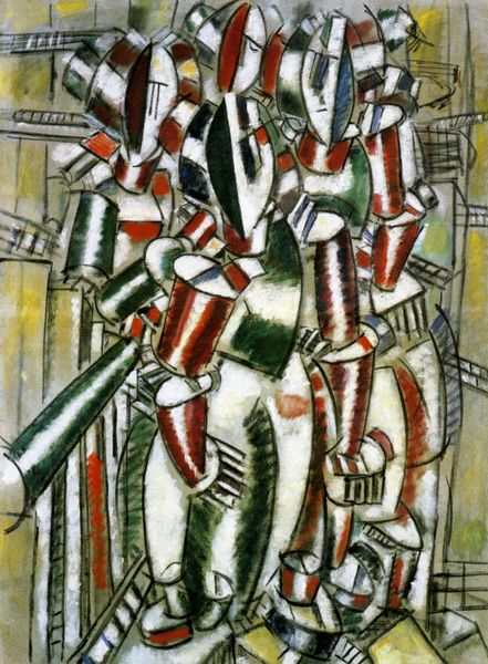 Fernand Léger made this painting of a Soldier with a pipe, in oil, and it looks like he's working through some ideas about how to flatten forms, make them geometric, in a limited palette. I love how the silvery greys create a kind of metallic feel, while the touches of red, maybe on the soldier's helmet, offer these little jolts of warmth. It’s like he's building up the soldier from cylinders and spheres, almost like machine parts. Look at that pipe he's holding; it’s so simplified, it's more like a symbol of a pipe than a realistic depiction. You can see the texture of the canvas coming through the paint, which adds a certain roughness to the image. Léger’s interest in everyday objects and the urban environment, feels like a precursor to some Pop Art ideas, but it's also got the analytical eye of Cubism. There's something very human in the way he renders the figure. For me, it's less about capturing a likeness and more about exploring the essence of form.