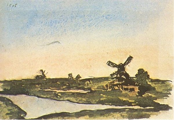 "Windmills at Montmartre" is a landscape drawing by Vincent van Gogh, created during his time in Paris. Van Gogh moved to Montmartre in 1886, joining his brother Theo. Here, the churning windmills and wild vegetation are presented with an immediacy which perhaps speaks to Van Gogh's mindset at the time. The scene is depicted using expressive marks in charcoal, reflecting his experimentation with different styles. Montmartre, known for its working-class population, nightlife, and artist studios, had a bohemian vibe, and Van Gogh aimed to capture its raw essence. These windmills, which are also a connection to his Dutch homeland, were an escape for Van Gogh. As he wrote to his brother Theo: “It’s a pity you can’t both see it now — I believe you’d be feeling the passion for painting again too”. This work captures the heart of a time when Van Gogh was feeling the pulse of change while also feeling the embrace of Paris. The drawing stands as a testament to Van Gogh's quest to find beauty in the ordinary.