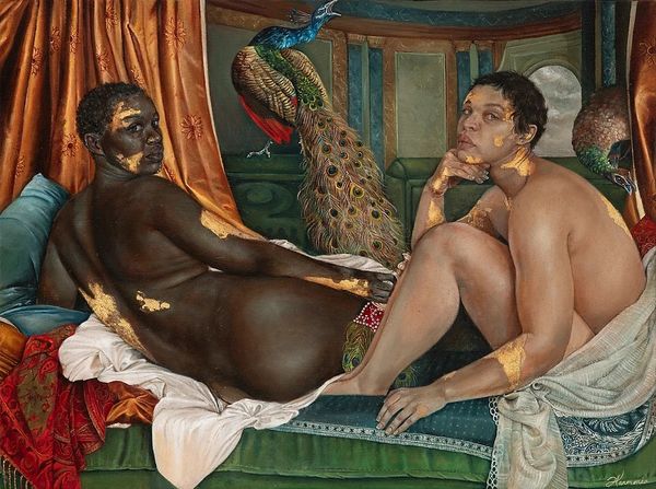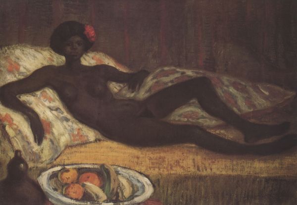 Henri Regnault's "Seated African Woman" presents us with a compelling figure whose very pose speaks volumes across time. Here, the draped fabric acts as a classical element, reminiscent of the toga, the ancient garment symbolizing status and power, repurposed here to frame the seated woman. The woman's gaze is particularly striking; it evokes a sense of quiet strength and introspection. This direct yet detached gaze echoes in countless portraits across history, from ancient Roman busts to Renaissance Madonnas, each bearing a weight of history and cultural expectation. Note the orange headscarf, a vibrant marker of identity that might evoke contemporary fashion yet also calls to mind similar adornments in Byzantine mosaics or Renaissance paintings, where head coverings signify dignity. The presence of the red curtain is no accident: its color, associated with passion and drama, suggests the theatricality of display and raises questions about the woman’s role in this constructed scene. This is not a straightforward depiction, but a complex layering of symbols.