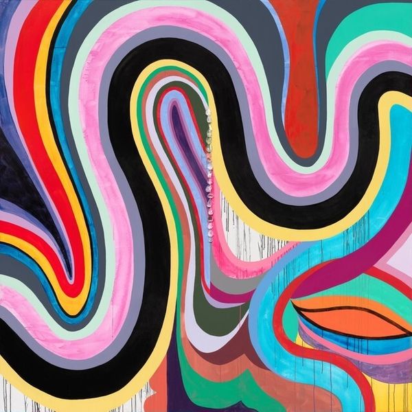 Editor: Rodrigo Franzao’s "Structural 1," painted in 2014 with acrylics, certainly pops! All those vibrant geometric shapes create this interesting tension. What's your read on this piece? Curator: What strikes me first is the visual language it employs. Given its clear references to geometric abstraction and hard-edge painting, I wonder if this piece functions as a commentary on the very nature of structure – societal structures, perhaps? Consider how the rigid black lines both define and confine the colorful shapes. Editor: That’s interesting! I was just focused on the colours, but now I see the tension in the lines, too. The black feels almost oppressive against those vibrant colours. Do you think it's commenting on control? Curator: Exactly! It reminds me of how institutions can impose limitations. And within those boundaries, the explosion of color and the repetitive geometric forms can be interpreted as resistance – individual expression pushing against these structural constraints. Editor: So, you're saying it could be a visual representation of people existing and creating within larger systems? Almost like finding freedom within limitations? Curator: Precisely. Think about queer theory and the way it embraces limitations to redefine boundaries. This piece makes me question what the artist wants to express. Where might Franzao's intersectional identities fit in this narrative of geometric tension? Editor: I hadn’t thought about that, but it definitely gives the work another layer. It makes you question the forms within and outside those structures. Curator: Art serves as a tool to analyse these imposed systems of power. Now what do we learn? Editor: Now I see more than just colourful shapes. I can really feel how structure and self-expression are playing off each other! Curator: Exactly. By acknowledging that interplay, we become active participants in that very structural dynamic.