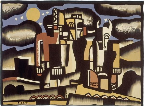 Curator: Ivan Generalic painted “Landscape with a house” in 1939, rendered with oil paint. It’s a striking example of naïve art. Editor: Yes, the simplicity hits you immediately. But underneath that there is so much more to discuss. The sky feels incredibly heavy and foreboding against this quaint scene, almost apocalyptic. Curator: Generalic, working from a peasant background himself, played with the tension between the ideal of rural life and the looming presence of social unrest as the second world war approached. Editor: Right, and the bright thatched roof of the house in the foreground feels almost desperate in contrast. As if trying to retain innocence against the storm—both literally and metaphorically brewing. The folk-art style and oil paint texture create a vivid and captivating composition! Curator: The composition is deliberately flattened, lending a feeling of innocence. His use of perspective deviates from traditional landscapes of the period and yet you feel a connection to earlier landscape traditions, and a contemporary commentary too. Editor: It’s that perspective shift that draws me in, a child-like rendering but also a strategic choice. The landscape then reflects not reality but collective memory, perhaps yearning for simpler times but undeniably under threat. Who would feel secure living in such a space when danger looms nearby? It raises some pertinent questions, particularly as war raged around that time! Curator: I agree, he successfully captures this sentiment. The painting creates this strong dialogue, revealing that perhaps the idea of such a space might always have been a myth to some degree, even before times of war. Editor: Indeed, so a painting like this allows us to discuss how political narratives and power impact perceptions of identity. This piece feels extremely vital, a perspective we do not usually get. Curator: Absolutely, Generalic provides a complex, rather than simplistic, perspective on the idea of "folk". A remarkable contribution to that critical narrative. Editor: A strong piece with many interpretations to unpack then! I'm walking away from it seeing its importance now, within the war context but beyond too.