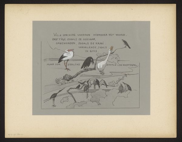 Theo van Hoytema created this drawing, titled 'Verschillende vogelsoorten', likely with pen and ink, showing an assortment of bird species. The image serves as a compendium, with each bird meticulously labeled, reflecting a cultural desire to categorize and understand the natural world. Consider the depiction of the owl, or "uil" perched among branches. Throughout history, the owl has been a symbol of wisdom and vigilance, yet also associated with darkness and the nocturnal. Its presence reminds me of the ancient Greek association of the owl with Athena, the goddess of wisdom, or, much later, Goya’s haunting depictions, where owls embody a more sinister, irrational element. Notice too the figure labeled "winterkoning". In folklore, this bird is often associated with midwinter celebrations, rebirth, and the cyclical nature of time. These symbols resonate deeply, tapping into primal fears, hopes, and the human longing for understanding our place within the cosmos. They resurface, evolving and taking on new meanings across time.
