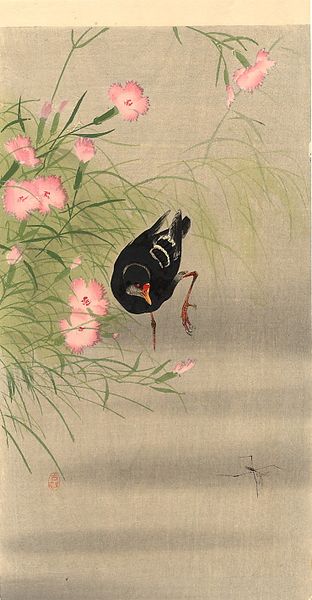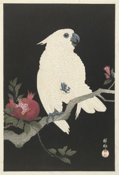 Ohara Koson made this woodblock print of a crow on a cherry branch, but when exactly, who knows? You can see how he really embraces the process of art making with these simple lines and colors, focusing on what’s essential. I love the contrast between the sleek, dark crow and the fluffy, cloud-like blossoms! The artist has rendered the crow with such a velvety blackness, hasn't he? Notice the subtle textures suggesting feathers, and how the bird's eye catches the light. Then, your eye drifts to these delicate petals, floating like confetti. It’s a bit like a dance, the way the composition pulls you in different directions, creating a visual rhythm. Speaking of rhythm, this reminds me of those James McNeill Whistler paintings. Similar focus on tone and atmosphere, that feeling of capturing a fleeting moment. I think it’s cool to see how artists from different times and places can be in conversation, even if they never met.