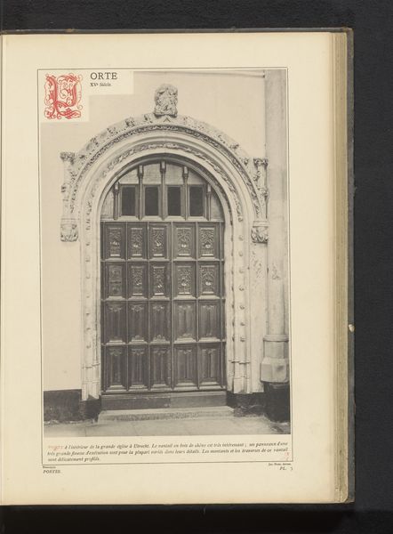 Editor: This print, taken before 1889, depicts the stone portal at the southern transept of the Collegiate Church of Notre-Dame in Dinant. The architecture just strikes me as incredibly imposing. What significance do you see in a structure like this? Curator: Well, the architecture speaks volumes. It’s Gothic, clearly, so we are already immersed in a world of aspiration – these soaring vertical lines quite literally directing the eye, and therefore the spirit, upwards. Tell me, what emotions are conjured up when you see this print? Editor: I guess awe, definitely a sense of something powerful and permanent. And maybe even a bit… detached? Like, it’s a record of something, rather than the thing itself. Curator: Precisely. It acts as a vessel of collective memory, doesn’t it? Think about the symbolic weight embedded within these structures. The archways themselves—a motif of passage, of entering a sacred space, and the sculptures nestled above evoke biblical stories, reinforcing a sense of shared history. Does that resonate with you? Editor: I think so, yeah. It's easy to forget these buildings were designed to teach as much as to inspire. The details all had meanings back then. Curator: Indeed! Every stone, every carving was intended to instill a certain narrative, reaffirm a specific belief. It served as cultural memory in action, especially important at a time when literacy was not common, images became critical conveyors of value and tradition. I think this image has staying power. Editor: I never considered the impact of visual imagery to those who were non-readers. It feels like viewing the church with entirely new eyes. Thanks. Curator: My pleasure, thinking of symbols and images as an ever-flowing current from one generation to the next is a fascinating field of inquiry.
