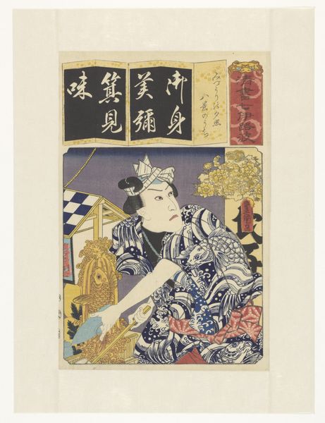 Editor: So, this striking woodblock print is titled "Vampire cat of Nabeshima", dating from the mid-1850s by Utagawa Kunisada. What first jumps out at me is the sheer dynamism, like the figure is caught mid-leap in some kind of supernatural drama. It's equal parts theatrical and unsettling! What’s your interpretation of this work? Curator: Ah, unsettling is the perfect word! Kunisada, ever the showman, knew how to pluck at those cultural strings. Think of it as a scene from a Kabuki play splashed onto a print. That theatricality, that overt display of emotion, that's pure ukiyo-e. Now, the vampire cat... that's tapping into a deep well of Japanese folklore, right? Cats with supernatural powers, beings that could shift between the human and animal worlds – potent symbols! Tell me, does that facial expression speak of villainy to you, or something more… tormented? Editor: Tormented, definitely. Those wide eyes and bared claws read more as desperate than purely evil. It's almost like the cat is caught in a transformation. Is there anything specific about the Nabeshima clan that would make this a culturally resonant subject? Curator: Exactly! There were whispers of scandals, tales of demonic interference. Kunisada gives us a glimpse into a society grappling with unseen forces, anxieties bubbling beneath the surface of everyday life. Did you notice how even the clouds have an almost menacing feel? Nothing’s just decoration; it all whispers secrets. Editor: Absolutely! It adds to the whole sense of unease. I came in thinking 'monster movie', but now I see a society’s fears personified. Curator: Yes, precisely. It reminds us that art, even the seemingly fantastical, often reflects very real societal undercurrents. Plus, now I need to find a Kabuki performance of the story; it’s definitely out there somewhere!