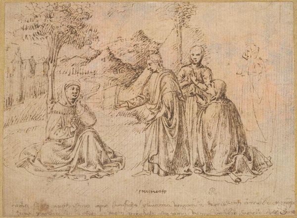 This is Domenico Ghirlandaio's pen and brown ink Study, a drawing located in the Uffizi Gallery, Florence. Ghirlandaio worked in Florence during the early Renaissance, a time of significant artistic and cultural transformation. The work provides a glimpse into the intricate social and gender dynamics of Renaissance Florence. Ghirlandaio was deeply influenced by the cultural expectations of his time. Women, often rendered as graceful figures, were celebrated for their virtue and beauty, while men are depicted with a sense of authority and intellect. Note the figures in the drawing, where each character appears to be in a specific role which is dictated by both gender and status. These archetypes were powerful and pervasive in the Renaissance era. Ghirlandaio's art subtly reflects and reinforces the prevailing social structure, offering us a view into the past and to reflect on our own values and representations today.