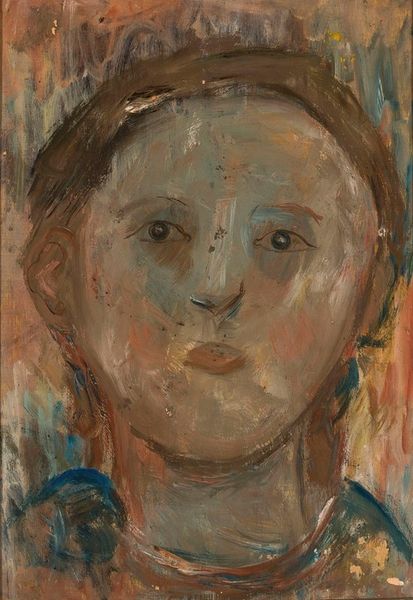 Editor: So here we have what's titled "Female Portrait," seemingly by Mykhailo Boychuk, done with oil paint. There's an interesting use of folk art references. How do you interpret this work? Curator: Well, looking at the "Female Portrait", I immediately focus on the materials and method of production. The visibly layered application of oil paint speaks to the artist's process. We also need to consider where Boychuk fits in the wider art world of his time, the social and political conditions in Ukraine that led to his emphasis on folk art. Editor: So, what was his aim with folk art in his paintings? Curator: To create accessible images using basic means. Considering Boychuk's career, we see the clear political decision he makes by favoring folk art. His emphasis wasn't about high art aspiration, it’s more concerned with communicating to a broad audience using simple resources and skills available to ordinary people. Editor: Do you think this elevates or diminishes the value of the work? Curator: It challenges our understanding of "value." Traditionally, we might assess paintings based on their refinement. However, Boychuk's folk style actively challenges this and asks the public to confront traditional boundaries in favor of the making of art itself and the socio-economic conditions that have defined artistic expression and our judgment. How do we place value on the process of democratizing art through the labor that everyday people were more accustomed to performing? Editor: So it is both about making art and providing people with the tools to value a painting like that. It is fascinating how considering the historical background reshapes how we see this portrait. Thank you. Curator: And thank you for prompting me to reconsider it. There's always a story within the material.
