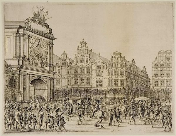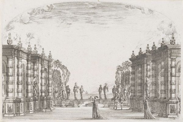 Stefano della Bella made this etching of the fourth act of ‘Mirame’ with sixteen actors. The work is an etching, which meant that della Bella would have covered a metal plate with a waxy ground, before drawing the composition with a fine needle, exposing the metal beneath. The plate would then be immersed in acid, which bites into the exposed lines. This process demands exacting skill, from the preparation of the ground to the control of the acid bath, each stage influencing the depth and quality of the lines. In this print, the crisp lines delineate the architectural elements of the stage, while the lighter, more delicate strokes capture the figures and atmosphere. The stark contrast between the precise architecture and softer figures creates a dynamic tension. Etchings like this reflect the values of precision, skill, and aesthetic refinement. They were a commodity, as much as they were art, tying creative practices to wider social issues of labor, politics, and consumption. Ultimately, understanding the materials and processes of production allows us to see beyond the image itself, and appreciate the skill and context that shaped its creation.
