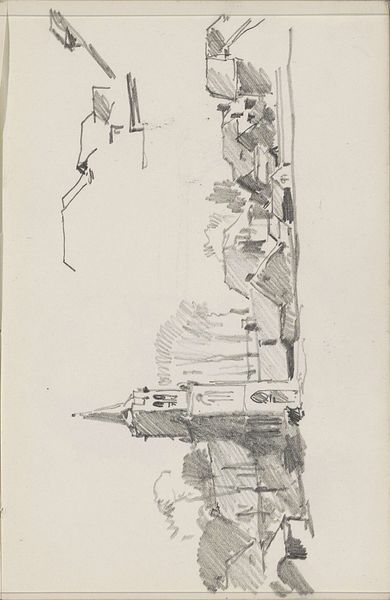 Curator: This drawing is called "Reddingssloep op het dek van een schip," which translates to "Lifeboat on the Deck of a Ship," created around 1935-1936 by Cornelis Vreedenburgh. Editor: It's got that raw, utilitarian feel to it, you know? Almost like looking through the eyes of a working sailor, rather than some romantic painting of the sea. Simple lines, stark shapes. A real working drawing, capturing the immediate essence of a lifeboat's components. Curator: Precisely. Vreedenburgh was known for capturing maritime subjects. The use of pencil on paper brings out the industrial aspect of the geometric shapes he renders. The location being the Rijksmuseum adds to this piece's value and shows it importance to Dutch art history. Editor: It feels almost like a technical diagram, yet there’s something very soulful about the rendering of the ropes. Those swirls contrast so starkly with the angular equipment—they bring the image to life and provide an almost dreamy feel. Curator: Good point. His deliberate choices create this tension of chaos and structure, mirroring life onboard. He’s playing with the conventional art academy models; challenging our modern expectations of how art functions as political and social commentary. Editor: Which makes you wonder, doesn't it? Is this just a record, a drawing for later? Or a kind of meditation on the tools that save lives? The pencil is humble but there's poetry, I think, in how he makes you think of human drama beyond the mere items. I see a ghost story that is a sea shanty on paper. Curator: His artistic approach clearly moves past just documentation into reflection of a maritime life! Viewing art from the Netherlands from the time helps paint a social context for the image, especially its position within maritime representations of Dutch history. Editor: I come back to the lines that really highlight the material of rope. Like memory rendered. Cornelis gave it just the right touch, conveying both weight and grace. Makes one think what will keep one afloat and that alone is powerful and very contemporary, actually.