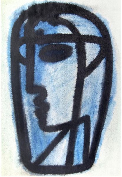 Vilen Barsky made this image with paint and possibly a brush. It is a kind of playful portrait, which is built up through layers of loose marks, like a puzzle. The process feels out in the open for us to see. I particularly enjoy how the red face is delineated with this electric blue line, almost like neon. Note how it loops and curls over the mouth, giving the whole head a sense of inner thought or secret knowledge. The paint application varies – some parts are thick, like the impasto strokes of white that frame the face; others are thin washes, allowing the ground to peek through. This kind of free and intuitive exploration of the figure reminds me a bit of Picasso's later paintings, where he too let his imagination run wild, playing with colour and form to create images that feel both familiar and strange. It invites us to embrace the ambiguity and endless possibilities of artmaking.