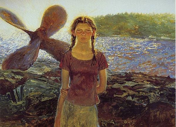 Curator: Good morning. Before us is “On the coast,” painted around 1890 by Paul Fischer, an artist well-known for his Copenhagen street scenes. Fischer adopted a plein-air approach for this work, capturing an intimate view of a woman facing the sea. Editor: It’s the subdued palette that strikes me first. The composition, although seemingly simple, has this beautiful melancholic resonance, almost a somber contemplation held in place by these very tactile rocks. Curator: Interesting you say that. Given that this was created during the rise of national romanticism in Scandinavia, these coastal landscapes often signified more than just natural beauty. They were powerful symbols of national identity. Her position with her back toward us might also resonate with longing, an unspoken national yearning of the time. Editor: But what does the woman symbolize specifically, facing toward this horizon? She's framed quite distinctly – these yellow flowers at the foot of the frame, and those soft out-of-focus village homes in the distance across the water – how do they modify the mood? Curator: I think those subtle details reinforce her connection with place, grounding her within a very specific cultural context. These landscapes in Danish art during this period act as portraits of cultural continuity, emblems of home and belonging. Editor: And the materiality of the brushstrokes – particularly on the rocks and in the foliage – has an evocative quality too, softening that contrast of hard land, and yielding seascape, even downplaying the sombre colors to highlight the hope held in this position on the cusp. Curator: A pertinent point. Fischer seems to imbue the coastline with emotional memory; you see the coastline so distinctly, as a site of cultural persistence despite political upheaval. It allows viewers to reconnect with this shared sense of heritage and place. Editor: Indeed. Perhaps it is more subtle and more hopeful than I had originally presumed. Curator: Absolutely. So as you reflect upon "On the coast" by Paul Fischer, consider the profound sense of identity it attempts to invoke, that the viewer may reconsider the role of the artist, as more than observer but preserver of place and tradition. Editor: Right – and consider how form and light might work hand-in-hand with these symbolist and cultural functions, to modify the way we reflect and remember as viewers and citizens ourselves.