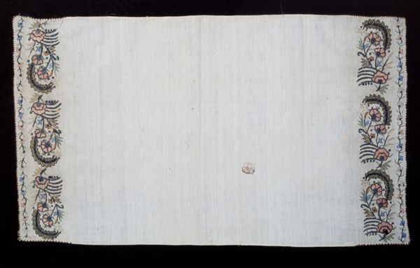 Editor: Here we have "Sash," a cotton textile from the 20th century. I am really drawn to the bright colors at each end, contrasting with the plain, central white fabric. How do you interpret this work? Curator: Well, beyond the surface-level beauty, I see a compelling conversation between utility and aesthetics. Consider the history of textiles – particularly for marginalized communities. They often function as both practical items and potent carriers of cultural narratives. The decorative ends, rich with color and pattern, suggest a celebration of craft passed down through generations. How might we view this within the context of, say, feminist art history and the Pattern and Decoration movement? Editor: That’s interesting. So, the 'sash' form… is it literally something to be worn, or is there more to it? Curator: Exactly! Think about the act of adorning the body, especially in communities where sartorial expression might be a form of resistance or cultural preservation. Is the act of creation and embellishment of functional objects a claim of agency, even a subtle act of defiance? The geometric patterns and vibrant hues can be seen as encoding specific stories or histories, legible to those within the culture. Editor: I never considered clothing or accessories as carrying so much meaning. It makes me wonder what stories it holds. Curator: Precisely! And perhaps that's the power of this piece, encouraging us to look beyond the aesthetic and ask: Whose story is woven into these threads? How does this object participate in broader dialogues about identity, craft, and cultural expression? Editor: Thank you! This changed how I see this “Sash.” I need to study the history of textiles now. Curator: Indeed! Keep in mind the intersections of art, identity, and the narratives embedded within everyday objects.