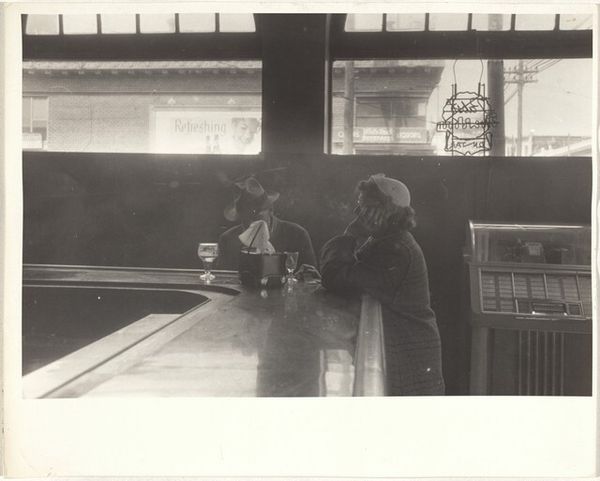 Robert Frank made this gelatin silver print, “Cafeteria line worker--Los Angeles”. The image is undated, but likely comes from the mid-1950s, when Frank traveled the US on a Guggenheim Fellowship. The image shows a woman working, presumably in a cafeteria. She is below a bank of lamps, her head bowed. The composition is stark and unflattering. The lighting is harsh. The scene is mundane. Frank’s image can be read against the narrative of this period, the postwar boom and the American dream, during which social conformity and consumerism were encouraged. The photograph is included in his book "The Americans". Frank’s work is an important example of how art can be used to challenge social norms and comment on the social structures of its own time. As historians, we can better understand this photograph by researching the social and economic conditions of the 1950s, as well as the history of photography as a documentary medium.