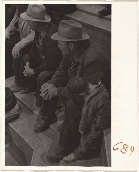 Robert Frank captured this image, 'Actors--Filming "Steibruch",' with a camera, sometime in the mid-20th century; its monochromatic palette and candid nature give it an arresting sense of immediacy. The grainy texture of the photograph and the way the light catches the faces, especially the actors in their costumes, reveal a world that feels simultaneously real and staged. Look at the way Frank frames the group, there's an almost sculptural quality to the arrangement of bodies. The eye is drawn to the contrasts: the smooth hats against the rough textures of the work clothes, the dark suits against the light shirts. That tension between the raw and the refined reminds me of the work of Diane Arbus, who also had a knack for finding beauty and strangeness in the everyday. Both artists invite us to consider what it means to observe, to document, and to create meaning through the simple act of looking. Ultimately, it's the photograph's ambiguity that makes it so compelling; it resists any single interpretation, inviting us to bring our own experiences to bear on what we see.