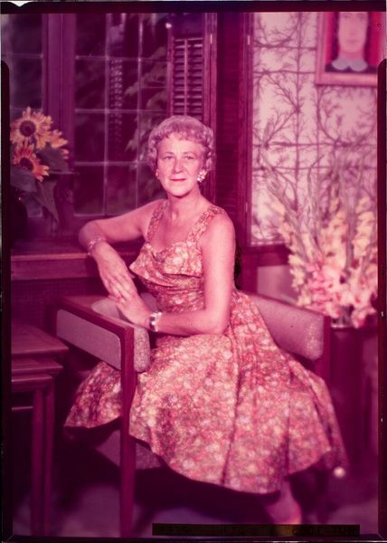 Editor: Here we have an untitled studio portrait of a young woman in a light dress, by Martin Schweig. It's a black and white photograph. What strikes me is how poised and serene she appears, almost like a classical sculpture. What do you see in this piece? Curator: The woman's gaze is direct, isn't it? It's reminiscent of portraiture throughout history, designed to project an image of virtuous character. The photograph bears the marks of its creation, see the word "proof"? It reminds us how constructed images are, and how they can shape collective memory. Editor: So, the "proof" notation adds another layer to the portrait? Curator: Exactly! It acknowledges the artifice inherent in image-making, which is also why symbols matter. What meanings do we associate with her hairstyle? Her dress? Editor: I hadn't considered those details so closely. Thanks, I learned a lot today! Curator: As did I. Thank you.