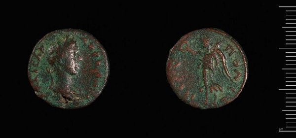 Editor: Here we have a Follis of Justin II from Constantinople, it’s small, metallic, and the green patina gives it a ghostly feel. What stories do you think it holds? Curator: Oh, to hold that little disc! Imagine all the hands it’s passed through, all the whispered transactions, the weight of an empire resting on its worth. It speaks of power, doesn't it? A tangible link to a bygone era. Editor: Definitely. It’s amazing how much history can be packed into such a tiny object. Curator: Right? It's like a little portal, a shimmering echo of Justin's reign. Makes you wonder what he was really like, doesn't it? Editor: It does! I never thought I could feel history in a coin. Curator: Well now you have! Every artifact has a story. Now, what else grabs your attention?