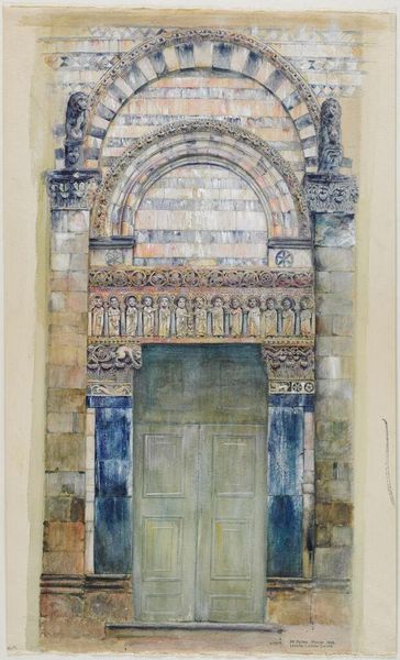 Editor: So, this is Joseph Smith's "Palazzo Bernardo, Venice, Italy." It's quite large and rendered in watercolor. The architecture feels so ornate, but there is also a sketch on the back. What do you see in this piece, looking at it from your perspective? Curator: Smith's watercolor directs our attention to the Palazzo's physical structure and its methods of creation. Notice the emphasis on the building's facade; it exposes the labor and material investment required to construct such elaborate Venetian architecture. Editor: That’s a great point! The meticulous detail and the sketch on the back really underscore the process. Curator: Precisely! The sketch on the verso, the building materials, and the time taken contribute to its overall value, challenging the notion of art as purely aesthetic. I wonder how the cost of importing these materials affected Venetian society? Editor: It's fascinating to consider the economic impact embedded in the very fabric of the building and the artwork itself. Thanks for sharing that perspective! Curator: My pleasure. It’s all about appreciating the layers of production.