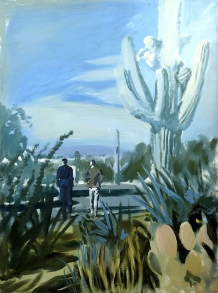"Cactuses" is a painting by Oleg Holosiy, an artist who came of age in the Soviet Union during a period of immense cultural and political transition. Holosiy belonged to a new wave of Ukrainian artists who sought to break away from the strictures of Soviet Realism. In this work, the cactuses, rendered in muted tones, stand as resilient figures in a stark, almost barren landscape. It suggests a connection to the post-Soviet experience of desolation. His color palette evokes a sense of melancholy, perhaps reflecting the uncertainties and disillusionment of a society in flux. Holosiy’s early death in 1993 adds a layer of poignancy to his art. "Cactuses" serves as a meditation on the themes of survival, adaptation, and the search for beauty in unexpected places. This painting becomes not just a depiction of a landscape, but a mirror reflecting a society grappling with its identity in a new world.