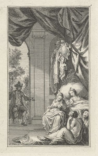 Simon Fokke created this engraving called, "Man in an interior, illuminated by a heavenly light," sometime in the 18th century. At first glance, it appears to depict a scene of domestic tranquility. However, a closer look reveals a more complex interplay of social and intellectual ideas typical of the Enlightenment. Made in the Netherlands, the image presents a man bathed in divine light, seated as if in contemplation of new ideas, while a woman sits at a table. The room is adorned with symbols of knowledge and leisure, suggesting a setting where intellectual pursuits and social refinement intersect. The presence of the man, illuminated, contrasts with the woman occupied with material things. This could be seen as reflecting the era’s debates about the roles of men and women in society. To understand this image fully, historians consult period texts, such as conduct manuals and philosophical essays. Through such resources, the cultural values and social tensions embedded in the artwork come to light.