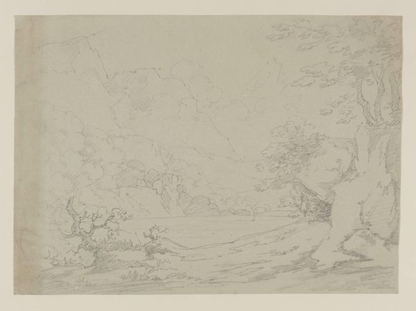 Curator: Here we have William Henry Fox Talbot's "Hagar in the Desert," created between 1840 and 1844. It’s currently held here at The Art Institute of Chicago, a haunting etching and pencil drawing. It's ethereal, almost ghostly in its delicate lines. What grabs you first? Editor: The fragility of the whole scene. There's such a palpable sense of desperation in the posture of Hagar and the way the landscape sort of bleeds into her figure. Even the angel feels more like a vision, an emanation of hope rather than a solid presence. Curator: Talbot captures that Romantic fascination with interiority and divine intervention. Hagar, cast out into the wilderness with her son, is at her lowest point before being saved. Notice how Talbot renders the angel—its almost as though she's a part of the nature surrounding Hagar, responding to her agony. It plays out so nicely with those harsh romantic era compositions, too! Editor: Yes, that blending is key. Angels often carry symbols of cultural power. They frequently serve as omens. Their frequent portrayal shows a collective societal hope or faith, here maybe a sign of hope against all odds, especially for those disenfranchised, or even exiled. Curator: Exactly. Consider also how Talbot’s chosen medium reinforces this effect. The etching on paper is so delicate. It conveys a dreamlike transience that feels perfectly matched to Hagar's story and plight. It almost feels unfinished to some degree, like we’ve been shown an apparition rather than a finality. What an evocative way of handling historical subject matter! Editor: Precisely! And this artistic choice really amplifies the image's power, doesn't it? Hagar is alone and seemingly facing inevitable tragedy. Curator: Yes, yes! To know this scene is to grasp that universal symbolism for the exile! The outcast, being saved by the light. I hadn't truly considered all this on previous viewings. Thank you.