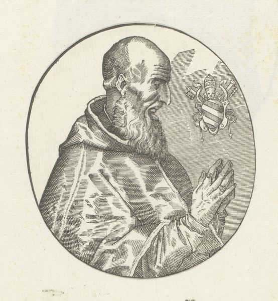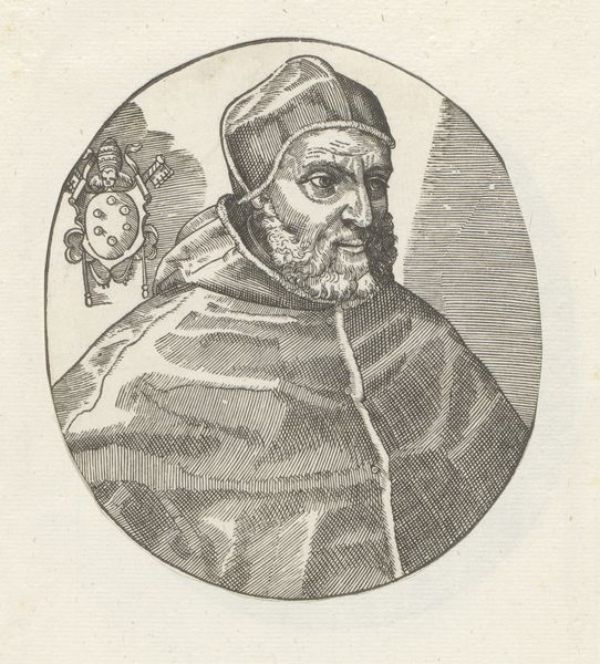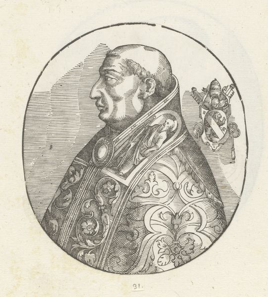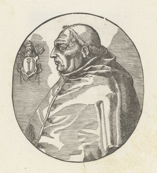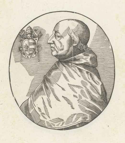 This is an engraving, dating from an unknown date, portraying Pope Sixtus IV, made by an anonymous artist. The composition is striking for its stark simplicity. Encased within a circle, we observe the profile of Pope Sixtus IV set against a neutral background. The artist has skillfully used hatching and cross-hatching to model the form, creating depth and volume in the figure's face and vestments. The lines are dense, yet they are applied with such precision to articulate the texture of the fabric and the contours of the Pope's face. Notice the inclusion of the papal coat of arms. Its presence serves not only to identify the subject but also as a symbolic marker of authority and power, reinforcing the Pope's status within the religious hierarchy. The lines that define form and space converge to create a powerful image. The visual language employed here is not merely descriptive; it constructs a visual narrative of power, identity, and representation.