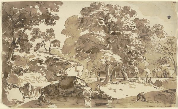 Curator: Oh, what a gentle scene! This watercolor on paper by Hans Thoma is titled "Schwarzwaldlandschaft, Blick vom Waldesrande auf die Berge," or "Black Forest Landscape, View from the Edge of the Forest onto the Mountains," painted in 1862. Editor: It feels like looking at a half-remembered dream, filtered through gauze. It's… peaceful, almost melancholic, but powerful too. Curator: Powerfully subtle, I think! Thoma really captured the soft light and the quiet immensity of the Black Forest. You can almost smell the damp earth and pine needles. It embodies both Romanticism and Realism, don't you think? A fidelity to the observed, yet tinged with an emotional atmosphere. Editor: Absolutely. You know, landscapes in this era often served as vehicles for national identity and romantic notions of unspoiled nature. But who has access to this nature? Who profits from it? I wonder what socio-economic realities are obfuscated by such a picturesque image? Are there logging industries just outside the frame? Peasant farmers displaced from this forest? Curator: Those are sharp and very relevant questions. Perhaps Thoma was responding to those very tensions in his own way. He creates an immediate, yet fragile and temporal, record. You feel like if you breathed too hard, you could wash it away. I see a deliberate choice in the use of watercolor, so light and fluid to represent something so vast. Editor: That tension is what makes it interesting. The misty atmosphere, almost hides those imposing mountains. It speaks volumes about how power structures are subtly embedded within images that present themselves as neutral or objective, that hide any sign of working class. Curator: It reminds me that beauty itself can be a battleground, and art, an invitation to question what we see and how we see it. The personal is so very political. Editor: Yes. To truly see the landscape, you have to understand the social forces shaping it, too. Otherwise we will miss all that exists outside the idyllic space in the picture. Curator: A walk in the woods and a critical journey, all in one frame. I am so happy this little painting struck our chords and spurred such discussion! Editor: To many more such enriching insights! Thank you!