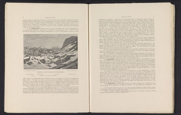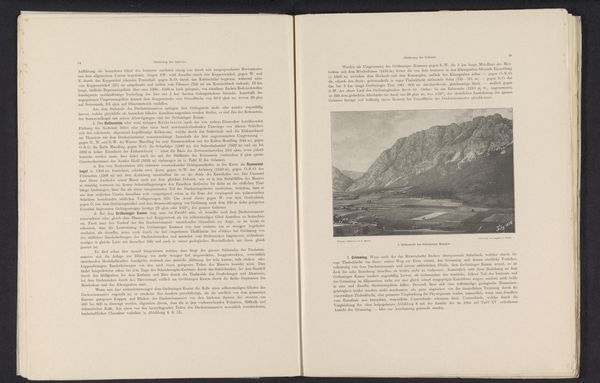 Curator: This photograph, entitled "Gezicht op de Ortler Alpen," attributed to Edgar Milster, predates 1903. As you can see, it's a print, likely a product of the pictorialist movement. Editor: Mmm, it's funny, isn't it? A picture of mountains making me feel claustrophobic. So much gray pressing down. Curator: Pictorialism, with its emphasis on aesthetic beauty over strict realism, often employed techniques to soften details and evoke atmosphere. Consider how that intention informs the interpretation of landscape and its intersection with nationalism or colonialism. Who has the right to see nature how? What meaning does nature have? And for whom? Editor: Woah, heavy questions! I see what you mean. I keep thinking the dark, blurry tones make everything recede – even those little buildings that hint at human presence. Are we dwarfed by nature, or trying to domesticate it? And did Edgar even ask himself the right question about the landscape or his audience? Curator: Exactly! The softness, the lack of sharp detail, pushes it toward subjective experience. Perhaps it suggests that our experience of nature is always filtered, mediated by our own cultural and historical baggage. The black and white emphasizes the drama, so what about what’s left out. Editor: And the little settlement is like a metaphor for humanity trying to survive in this massive, imposing landscape. And how long would that have survived anyway? The mountain outlasts all human habitation. Kind of a gloomy thought. Maybe Edgar wanted us to consider all these things! Curator: It's a reminder of the power of representation, the narratives we create, and the ever-shifting dialogue between ourselves and the world around us. Editor: Gives me the shivers, though...I can go back to mountains when global warming gets reversed!