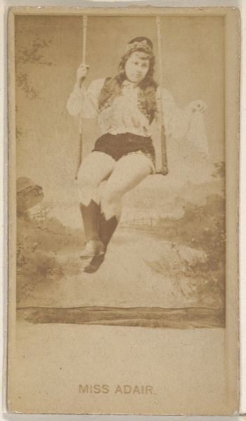 Editor: This is "British India," a print from the "Dancing Girls of the World" series by Wm. S. Kimball & Co., dating back to 1889. I find it striking how idealized the figure is, yet there's also a sense of staged exoticism about it. What’s your take on this piece? Curator: It's crucial to remember these were commercial images, essentially trade cards included with tobacco products. They circulated widely and thus significantly shaped perceptions of "exotic" cultures. The Orientalist style here wasn’t necessarily about accuracy, but about constructing an appealing fantasy for Western consumers. Do you see how the title "British India" already sets a colonial power dynamic? Editor: I do now, with the name boldly claiming ownership and reducing this woman to a symbol. I guess I was initially drawn to the visual appeal, the colors and the woman's pose, but hadn't fully considered the political implications of it being mass-produced. Curator: Exactly. It prompts us to consider how these images contributed to a visual vocabulary that justified and perpetuated colonial power. Her ‘dance’ becomes a performance *for* the Western gaze. Ask yourself, where would images like this have been displayed? And who would be viewing them? Editor: Likely in places like pubs, homes – places where men, specifically, gathered and reinforced these exoticized and colonial views. So it wasn't just art for art's sake, but propaganda in a way? Curator: Precisely. The power of images in shaping societal attitudes cannot be overstated. This seemingly innocent 'dancing girl' card actively participated in constructing and solidifying a colonial mindset. What did you take away from that realization? Editor: Well, I certainly won't look at seemingly harmless images the same way again. I have a deeper awareness of the cultural forces that shaped their production and reception. Thanks!