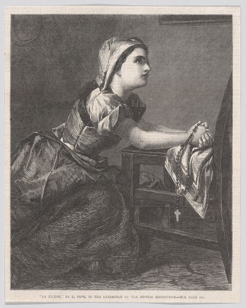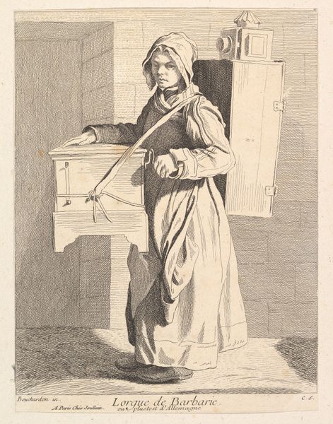 Editor: Here we have "Oudere vrouw met spinrok," or "Old Woman with a Spinning Wheel," an engraving by Enea Vico, dating from between 1533 and 1567. It’s got this incredible level of detail, given the medium, and I'm immediately struck by how the artist captures the woman's focused attention on her work. How do you interpret this piece? Curator: The strength of this engraving lies within its masterful orchestration of line. Observe the intricate cross-hatching that models the figure's voluminous drapery, creating a palpable sense of form and texture. Note how this contrasts with the smoother areas of the background. Editor: So, the texture is achieved through line variations, not through color, obviously, since it’s monochrome. Is there anything particularly noteworthy about the composition itself? Curator: Indeed. Consider the strategic placement of the figure within the pictorial space. The woman’s off-center positioning, balanced by the geometric severity of the architectural elements, lends the work a certain dynamism, preventing it from feeling static or predictable. Do you see how her placement draws the eye throughout the work? Editor: Now that you mention it, yes. It creates a flow that keeps the eye moving. I hadn't really noticed that before. Curator: And finally, note the contrasting areas of sharp focus and deliberate blurring which draw your eyes to different focal points on the work and further enliven the subject through careful composition. Editor: I see what you mean! I’ll definitely look at engravings differently now, thinking about the artist's calculated choices. Thanks for pointing out those formal aspects. Curator: My pleasure. Formal analysis allows us to consider an artwork as a self-contained system of visual relationships, so that its power persists even as cultural contexts shift over time.
