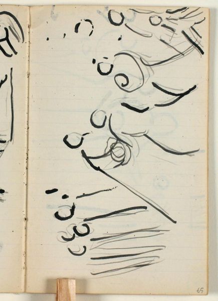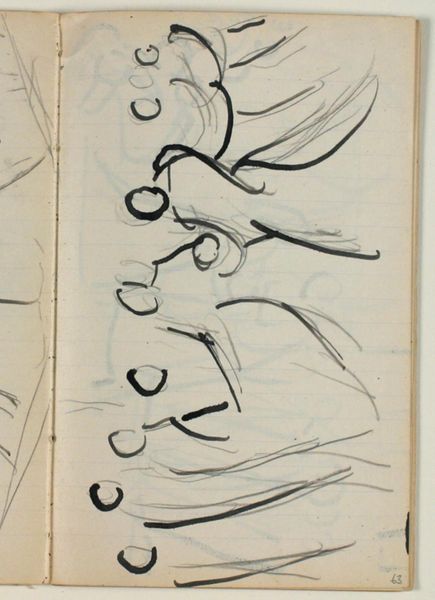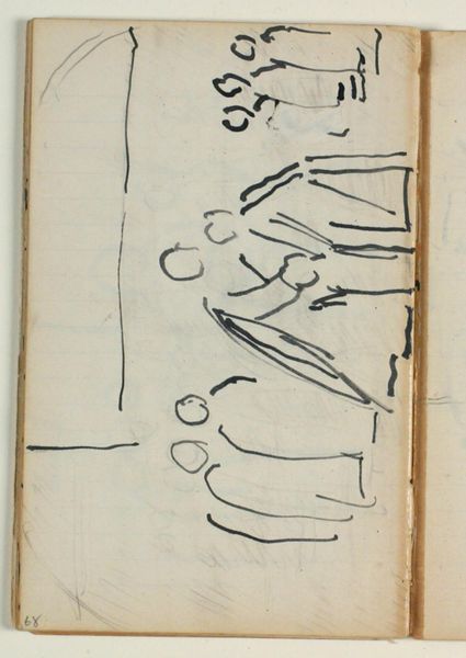 Curator: We're looking at "Udkast til 'Kristus velsigner de små børn'," or "Draft for 'Christ Blessing the Children'," a drawing created by Niels Larsen Stevns between 1937 and 1938, currently residing here at the SMK. Editor: My first thought? Stark simplicity. The monochrome strokes, the minimalism... it has a rawness that really draws you in. It looks like something sketched in a notebook, intimate, immediate. Curator: It's exactly that. Consider the context: Stevns was grappling with themes of faith and social responsibility amidst a Europe inching towards war. This sketch is more than a religious scene; it embodies the universal desire for protection and hope, especially for the vulnerable. The children represent the future, blessed not in a lavish cathedral, but within the reach of simple lines on paper. Editor: Yet, the formal arrangement has its own power. Notice how the linear marks generate the shapes and also denote a structure. He uses strokes of varying weight and length to suggest the light on and volume of bodies in a crowd. You can make out forms and understand massing without excess elaboration. Curator: Absolutely. And if we consider Stevns’ involvement in movements advocating for social justice, this rendering underscores the radical potential of the biblical story. Blessing becomes an act of solidarity, and these almost rudimentary strokes visualize the pressing demand of caring and providing. Editor: Perhaps, though I read the emphasis on spare mark-making more formally. How a reduction can convey so much. Stevns gives you just enough visual information to understand the picture's components and organize these into figural relationships on the plane of the drawing. The result transcends historical reference. Curator: Ultimately, whether viewing it from a place of formal elegance or within its complicated historical frame, what remains undeniable is the tenderness embodied in this quick work—Stevns uses simple figures to suggest themes of grace, care, and, on a wider register, societal reform. Editor: Yes, regardless of interpretation, the strength of line certainly compels engagement. A valuable peek behind the curtain.