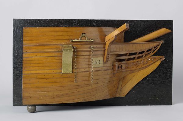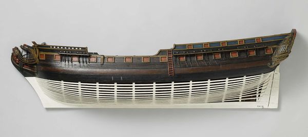 This half model of a 5-Gun War Galley is an intriguing object whose creator and exact date remain unknown. Encased within a black frame, the neutral tones and meticulous craftsmanship of the ship contrast with the inky background, evoking a sense of preserved history. The composition is dominated by horizontal lines, emphasizing the ship’s length and its relationship to the water. The artist has cleverly used the model’s cross-section to reveal its inner structure and design. The visible ribs and deck construction, alongside elements like miniature lifeboats and masts, are not merely decorative. They invite us to consider the relationship between form and function. The anonymous creator highlights the ship as a marvel of engineering and a potent symbol of maritime power, prompting a discourse on humanity’s ongoing quest to conquer the seas. The model’s form, therefore, functions as a discourse on trade, technology, and exploration.