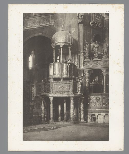 Editor: This photograph, "Corinthische zuil bij de San Marco in Venetië," taken before 1884 by Carl Heinrich Jacobi, presents a Corinthian column at San Marco. It feels…almost staged. It's clearly meant to capture a certain aesthetic. How do you interpret this work? Curator: This image invites us to consider the socio-political context of Venice at the time, particularly through the lens of Orientalism. The deliberate framing of the Corinthian column—a symbol of classical European architecture—within a Venetian landscape suggests a Western gaze appropriating and romanticizing a foreign "other." Consider, whose Venice is this? Is it the Venice of the Venetian people? Or is it a carefully constructed fantasy for the consumption of European tourists and elites? Editor: That’s interesting. I hadn't thought of it as a commentary on appropriation. So, the realism of the photo is almost…deceptive? Curator: Exactly. Photography, in its early days, was often perceived as an objective medium. Yet, even then, photographers actively constructed narratives. What's excluded from the frame is just as important. The photographer’s intent, shaped by colonial ideologies, is inscribed in this "realistic" depiction. Editor: Are you suggesting the very act of photographing a place like Venice becomes a kind of power play? Curator: Absolutely. Think about how the depiction of Venice, with its Byzantine influences, feeds into a broader discourse about the East and West. How do elements like light and shadow contribute to the mood of exoticism versus familiarity? Editor: So by studying seemingly simple photographs, we can reveal complicated dynamics of power, representation, and identity. Curator: Precisely. The personal and political are interwoven here. Editor: This gives me a completely different understanding of this image! Curator: I'm glad to hear it. It is vital that we continue decolonizing our view of these artefacts.