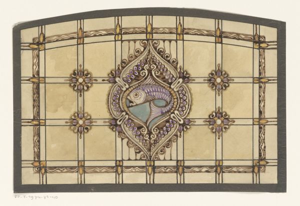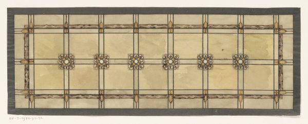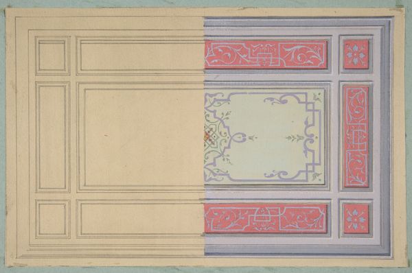 Jules-Edmond-Charles Lachaise made this design for a framed panel with painted decoration, using pencil and watercolor. The combination of pencil underdrawing with delicate watercolor washes speaks to the traditions of architectural rendering, where precision and careful detailing are paramount. Look closely, and you'll notice the geometry. A central, multi-pointed star within a circle, surrounded by decorative floral motifs. The frame, rendered in wood tones, suggests the panel's intended placement within an interior space. This type of design work reflects the period's interest in ornamentation and the revival of historical styles. The design process would have involved technical drawing skills, and the application of watercolor requires patience and control. It’s not ‘high art,’ but skilled labor nonetheless, intended to shape the environments of the well-to-do. The overall effect is one of understated elegance, characteristic of interior design intended for bourgeois consumption, where decoration provided a backdrop for modern life.