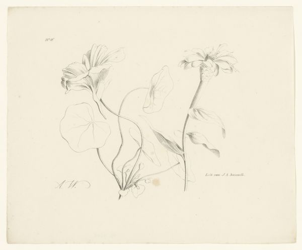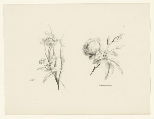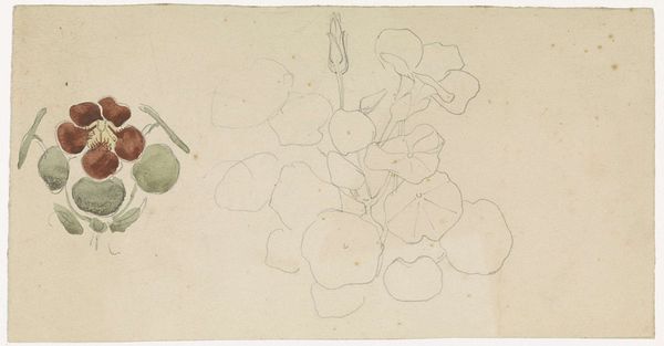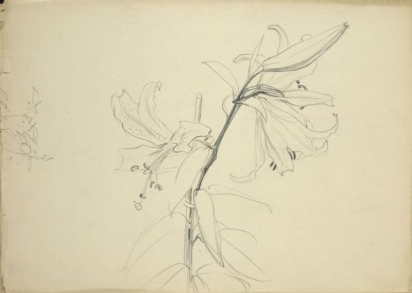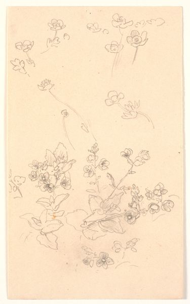 Curator: This is John Singer Sargent's "Sketch of Fig Branch; Sketch of Pomegranates," held here at the Harvard Art Museums. Editor: Delicate! It feels like a fleeting moment, captured with such simplicity. I find the composition wonderfully balanced. Curator: Sargent's choice of medium, likely graphite on paper, speaks to a pragmatic approach. It's a study, an exploration of form and light. These sketches likely served as preparatory work. Editor: Oh, absolutely. There's a sense of the artist’s hand, of observing and responding, almost improvising a language of form. It breathes, doesn't it? It's the raw gesture, the hint of volume, not labored over. Curator: His rapid notation reveals the artist's process, underlining the labour involved in rendering the material world. The paper becomes a site of production, a register of botanical forms. Editor: It invites us to be co-creators of beauty; the sketch becomes a bridge between Sargent’s vision and our own imagination, doesn't it? It really does. Curator: Indeed. I see this drawing as an instance of the artist's focus on the materiality of representation. Editor: And I think, "Ah, a reminder that beauty lies even in the simplest of observations, in the everyday!"