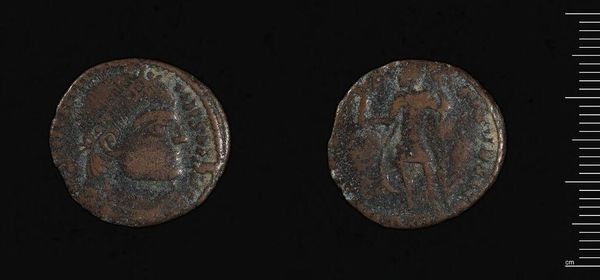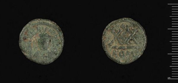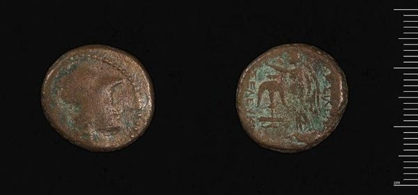 Curator: This is a coin of Alexandreia under Commodus-Gallienus, likely dating to the reign of Gallienus in the 3rd century CE. Editor: It's intriguing how much information is etched onto such a small, unassuming material. I'm drawn to the patina; it speaks of time, of slow transformation. Curator: Absolutely, and the coin's production itself would have been a complex process. Consider the labor involved, from the mining of the metal to the die-cutting and striking—all part of the Roman economic engine. Editor: These coins were more than mere currency. They were political tools, carrying the emperor's image into every corner of the empire, and serving as a medium to broadcast power. Curator: We see here the residue of the processes of consumption and exchange that sustained the Roman empire. Editor: The horse, likely a symbol of power or imperial favor, adds another layer of political and social messaging to this piece. Curator: Examining the material composition and production methods reveals a great deal about the economics of the Roman period. Editor: It's amazing how such a commonplace object has been transformed by history into something so evocative.