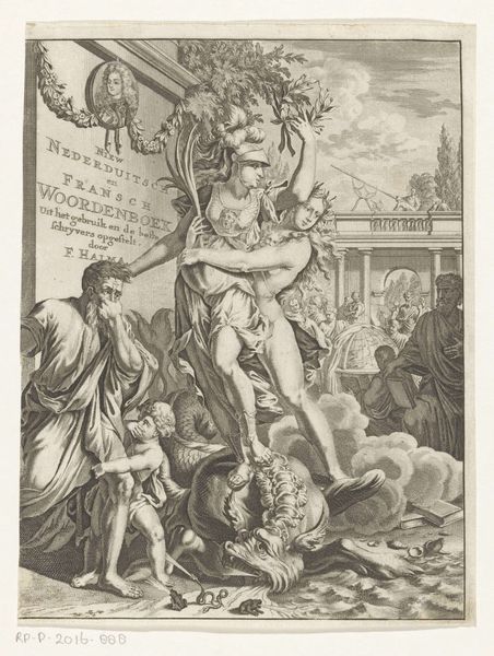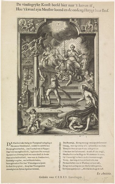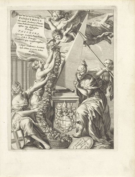 Editor: So here we have "Truth Teaches Man to Worship God," an engraving by Dirck Volckertsz Coornhert from around 1566-1578. The stark contrast and linear detail really give it a dramatic feel. What compositional elements stand out to you most? Curator: Observe how the composition hinges on a series of spatial divisions, beginning with the threshold framing the supplicant's introduction to a divinely-illuminated prospect. Notice also how light both reveals and obscures the forms, heightening the symbolic importance of truth. Editor: The way the bodies are rendered is very striking too. What does it say, technically and philosophically? Curator: Consider the idealized figures juxtaposed against the meticulous detailing of architectural structures. This creates a dialogue between form and content. The engraver’s technical mastery lends to an abstract inquiry into humanity's potential for divinity, seen through the very crispness of the line itself. Editor: Interesting. So, it's almost like the technique itself becomes part of the artwork's meaning, not just a means to an end? Curator: Precisely. The sharpness of the engraving mirrors the clarity with which Truth guides towards religious enlightenment. The physical attributes of the materials themselves underscore and deepen the engraving's thematic core. Editor: I never thought of it that way before. Thank you, that gives me a new perspective on how to view the construction and significance of an engraving. Curator: Indeed, recognizing how artistic choices in medium and presentation augment meaning offers an approach applicable to the whole of visual art history.