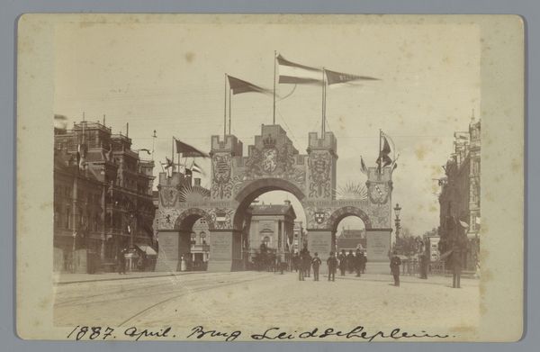 This photograph was taken in Amsterdam in April 1887 by Gustaaf Oosterhuis. It shows the decorated Erepoort, or honorary gate, built for King Willem III’s 70th birthday. What might seem like simple civic pageantry offers a glimpse into the values and power structures of the time. Note the gate’s imposing, castle-like design, meant to evoke strength and tradition. Flags fly high, symbols of national pride and unity. It’s interesting to consider how such displays of loyalty were used to reinforce the monarchy's authority. This was a period of increasing social change, with emerging labor movements and calls for greater democracy. The monarchy sought to project an image of stability and enduring power. By studying such images alongside period newspapers, political pamphlets, and other historical documents, we can better understand the complex relationship between art, power, and society in late 19th-century Netherlands.