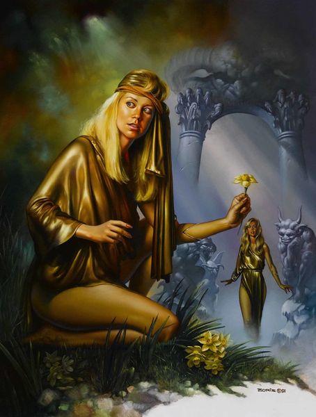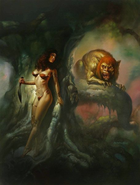 Boris Vallejo's painting depicts a woman in a forest, adorned with jewelry and leaves. Looking at the cultural context of this image, we see the influence of fantasy art, with roots in pulp magazines and comic books. Here, the artist draws upon the tradition of idealized female figures, prevalent in both classical art and contemporary pin-up culture. The figure, scantily clad and armed with a bow, evokes both vulnerability and strength. But it is important to remember that this image is a product of its time, reflecting the cultural norms and societal expectations of gender roles in the late 20th century. To fully understand the image we need to delve into art history archives, compare it with similar images from the period, and read essays, critiques and commentaries that were circulating at the time of the painting's release. This allows us to critically examine its social and cultural significance.