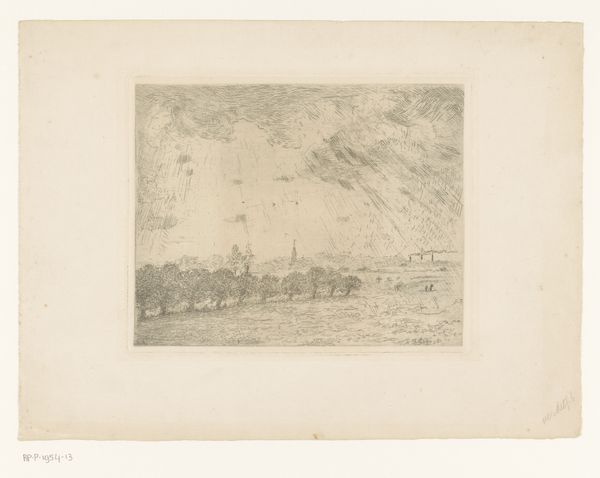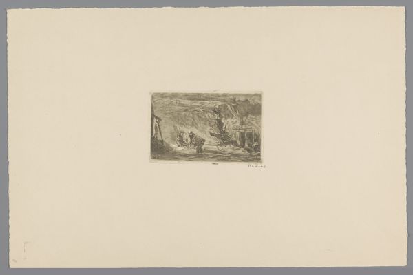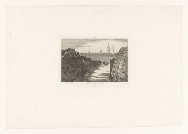 Léon Dolez made this print of Mons and the park gate using etching, a printmaking technique that dates back centuries. The labor-intensive process begins with coating a metal plate with a waxy, acid-resistant substance called a ground. The artist then scratches an image into the ground, exposing the metal beneath. When the plate is submerged in acid, the exposed lines are eaten away, creating grooves. Ink is then applied to the plate, filling the etched lines, and the surface is wiped clean. Finally, the plate is pressed onto paper, transferring the ink and creating the print. Dolez's skillful use of etching captures the subtle textures of the stone wall and reflects the light on the water’s surface. This attention to detail and mastery of the etching process underscores how even seemingly straightforward landscape imagery can reflect deep engagement with materials, making, and the world around us.