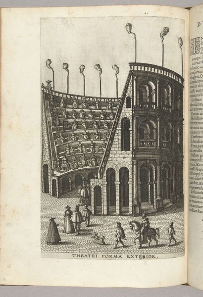 Curator: This engraving from the late 16th century, entitled "Theater van de Vrede (interieur)," which translates to "Theater of Peace (interior)," produced circa 1594-1595 by Pieter van der Borcht the Elder, immediately evokes a sense of grandeur. Editor: Yes, my immediate impression is of meticulously organized chaos, or rather, a structural dance. Look at the radiating lines of the seating contrasted with the static figures. The visual perspective almost hyperbolizes the spatial arrangement. Curator: The subject matter also speaks volumes about the cultural anxieties and aspirations of the time. The “Theater of Peace” is not merely a building; it's a symbolic space, representative of a desired utopian social order. What we're viewing can be contextualized with rising humanism—hope—across Europe and perhaps an indictment against protracted imperial projects. Editor: Precisely. Van der Borcht utilizes the receding planes of the theater to amplify the idea of perspective – both visually and conceptually. See how the artist's rendering of depth charges the scene with meaning. Curator: And how the tiers upon tiers of figures create a social panorama. The people are representations of various societal roles all in this place together. Notice they are presented with attributes that help denote which function or place each is to occupy in the cultural memory that such an image sustains. They are archetypes of their civic responsibilities. Editor: Absolutely. He utilizes symbolism deeply embedded in Northern Renaissance thought and style—the overall architectural rendering being almost Escher-like. Yet, if one scrutinizes the geometric lines and careful gradation of shading, it presents a complex system that balances structure and suggestion, reflecting human aspirations of perfection with known flawed approaches. Curator: It is, indeed, a powerful fusion of artistry and ideology. I am continually struck by how deeply ingrained notions of societal harmony were articulated via such architecturally fascinating representations. Editor: It makes one consider how our own contemporary architecture—or depictions of it—mirrors or deviates from this quest for visible, material utopia. Thanks, this print left me more meditative and appreciative of the intricacies and paradoxes that artists render so palpable in architectural and social space.