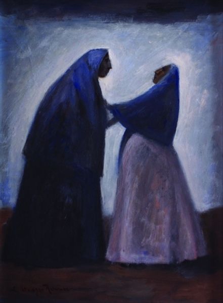 John Singer Sargent painted "Study of Two Bedouins" with oil on canvas, and it feels like a moment captured, a fleeting impression. The brushstrokes are so visible, like he’s wrestling with the paint, trying to pin down these figures before they vanish. Look at how the light catches the white robe of the figure on the left. Each stroke is like a little facet, building up the form. It's thick, but not in a gloppy way. Sargent is so in control of his medium, and the colours are muted, almost sandy, echoing the desert landscape. Then notice the shadow cast by the figure on the right, see how he has used a touch of reddish brown. It’s all about the relationship of colour and light, capturing the feel of being there. This feels very connected to the work of Manet who was also interested in modern life. With both painters, it's like they are saying, "This is how I saw it; make of it what you will."