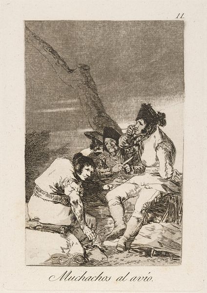 This image, 'An Artist Seated on a Rock at the Sea Shore,' was produced by Robert William Buss, an English artist active in the 19th century, using etching and engraving. The print captures an artist at work, surrounded by the tools of his trade: easel, brushes, and palette. Look closely, and you’ll see the labor involved in creating even a seemingly spontaneous seascape. The careful strokes of the etcher's needle and engraver's burin reveal the amount of work involved in the production process. What is fascinating here is the contrast between the artist’s labor and the seemingly untouched nature around him. The print hints at the growing commodification of art, and the artist's role within a changing economy. Ultimately, this print reminds us of the labor behind every image, and the complex relationship between art, nature, and commerce in the 19th century.
