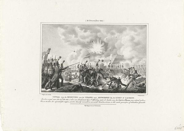 Adolf Carel Nunnink created this print of the "Victory in the Battle of Boutersem, 1831" using etching and burin. The central motif of the fallen soldier, a recurrent symbol in the theater of war, carries a potent emotional charge. Consider the "Ecce Homo" in religious art—the presentation of Christ bound and wounded. This image elicits empathy and contemplation on human suffering. Similarly, the fallen soldiers in Nunnink's print serve as a stark memento mori, reminding us of the transience of life. This iconography is not static; it evolves. In later works, such as those by Dix, the fallen soldier becomes a visceral condemnation of war's brutality, stripped of any heroic veneer. The collective memory of conflict is thus embedded in these evolving symbols, each iteration reflecting the changing cultural attitudes towards war and sacrifice. These images engage viewers on a subconscious level.