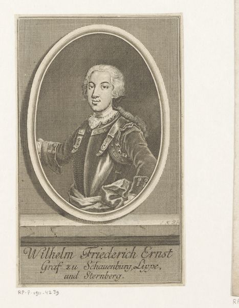 Curator: Looking at this portrait, the overwhelming feeling is one of composure and self-assurance, wouldn't you agree? The details, the textures are very precise, the face seems severe. Editor: Indeed. We have here J.F. Clemens’s rendering from sometime between 1775 and 1779, a print titled "Portrait of Court Surgeon Hans Friedrich Wohlert," now housed here at the Statens Museum for Kunst. It's fascinating to consider how these images circulated and reinforced power structures in 18th-century society. Curator: Exactly. I think there’s an intentional creation of persona at play. The framed portrait of a well-to-do white male from that period, the name emblazoned at the base of the sculpture. Are we supposed to automatically respect figures like this, and what would Foucault say about such images imposing their view on a modern audience? Editor: Well, we must contextualize Clemens' work within the academic art of his time. Consider the socio-political forces and institutions that would have supported and valorized a portrait like this one, of a man who was part of the royal court in Denmark. What did it mean to be portrayed? And what impact did this portrait have in shaping public perception of Wohlert and the royal court? Curator: Yes, but even understanding that context, there’s an inherent imbalance in the power dynamics represented. Here is Wohlert, in perpetuity and for posterity, while so many others remain unrepresented, unseen. How do we, as curators, engage with the historical context, but also confront its exclusions and biases? It must be viewed, at least partially, from a feminist viewpoint that analyzes it through its implications to race and other expressions of bias. Editor: It’s also key to examine how museums display this. Framing and positioning this work inevitably imbues it with renewed meanings. Ultimately, looking at it allows one to understand not just the era in which the work was crafted, but it encourages one to see how art has become a reflection of culture as well. Curator: I’d agree that it is this opportunity for reflection, through critical assessment, that allows the art to still challenge our social frameworks, even today.