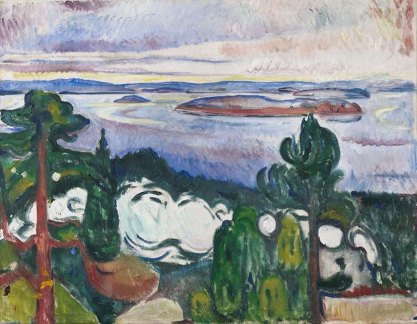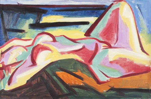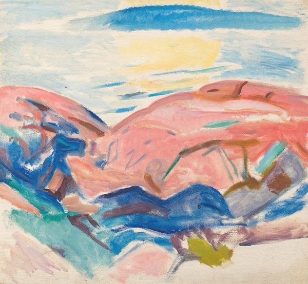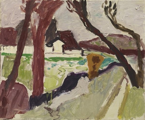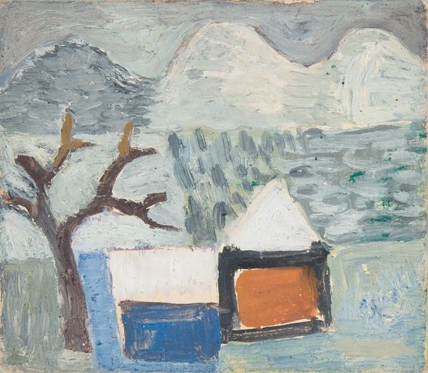 Sasza Blonder made this stylized landscape with oil paint, and what grabs me first are the colors. They’re so…not quite! Like a memory of a landscape. The paint has this beautiful, chalky surface, kind of matte. It’s not trying to trick you into thinking it’s a real place. Instead, it’s all about how Blonder laid down these delicious, buttery marks. Notice the pink tree, almost neon, with those strong black branches reaching up – it's so direct. Then there's the sun, like a big copper coin in the corner. It reminds me of Milton Avery, that way of simplifying and flattening space. But Blonder has a rawer edge, a kind of joyful awkwardness. It feels like he's less interested in getting it "right," and more in the sheer pleasure of pushing paint around. Like he is saying something heartfelt without using too many words.