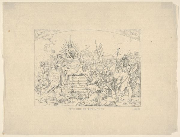 Editor: Here we have Charles Girardet’s "Veldslag bij Gaugamela", from around 1837, seemingly an ink and pencil work on paper. It’s quite intricate, but has a somewhat faded quality. What strikes you about this piece? Curator: Its depiction of warfare reflects the 19th century's fascination with grand historical narratives, particularly battles that shaped empires. How does the print engage with the viewer in terms of conveying the scale and chaos of such a momentous clash? Editor: I notice the bird in flight, as though an omen hovering above the fray. But tell me, how does a relatively small print like this participate in the larger public discourse about warfare and heroism at that time? Curator: The print served as a widely accessible means of disseminating and popularizing historical knowledge. Consider the proliferation of such prints and engravings: they offered a democratized way for the public to engage with history, even if that history was often filtered through a lens of romanticism or nationalism. Where do you think this work positions itself along such axis of popular imagination versus historic accuracy? Editor: Perhaps somewhere in the middle, aiming to both educate and enthrall the viewer. Curator: Precisely. It reflects a moment when historical events were becoming increasingly commodified and circulated as mass media. Think about how the very act of reproduction changes our understanding of something unique such as battle, its social value but also cultural meaning shifts in the face of the image printed. Editor: That gives me a lot to think about. I didn't realize how much a simple print could reveal about the broader social context. Curator: Indeed. Artworks like this offer fascinating glimpses into the politics of imagery and how the public engaged with the past.