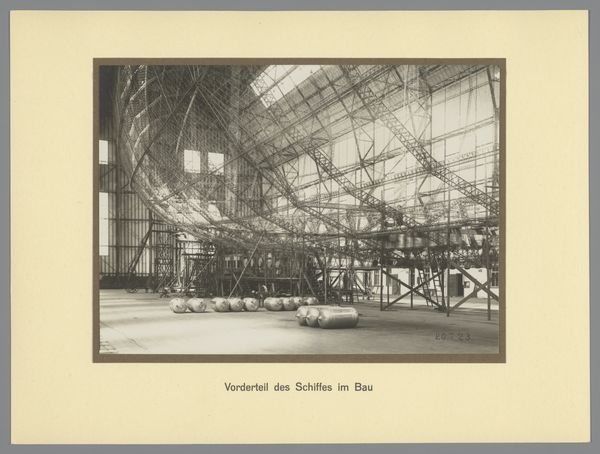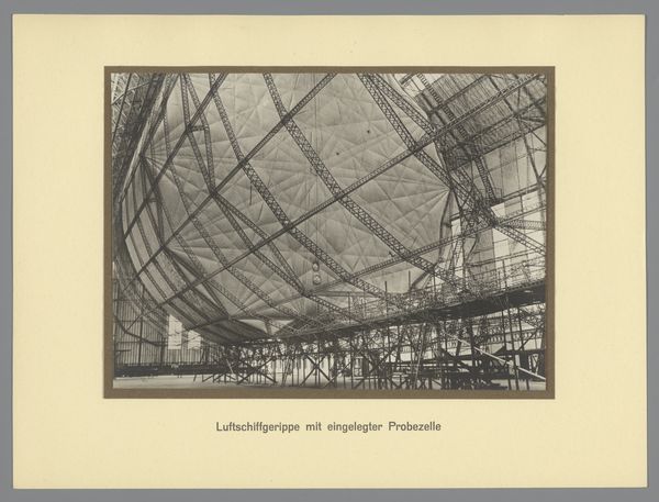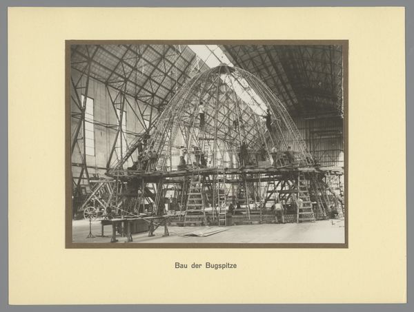 Editor: This is "Construction for the Universal Exhibition of 1855" from the workshop of Bertsch et D'Arnaud, a photograph documenting the building's creation. It’s quite amazing to see the skeletal framework exposed like this, emphasizing geometric and architectural forms. How does this photographic rendering of construction materials resonate with you? Curator: It highlights the often-invisible processes behind grand displays like the Universal Exhibition. Photography here doesn't just record a building; it reveals the labour, the materials, the very nuts and bolts–literally and figuratively–that go into constructing such an event. Consider the social context: this exhibition aimed to showcase industrial progress, but this photo draws attention to the means of production, the raw materiality that progress relies upon. It prompts questions about the human effort involved and the resources consumed. Editor: So, it’s a photograph about more than just architecture. It speaks about labour? Curator: Precisely! It directs our gaze to the working class and the tangible, material base upon which these celebrations of industry are built. Do you think this image was meant to critique or celebrate the spectacle of progress? Editor: I'm unsure; perhaps it straddles both. It celebrates human ingenuity yet tacitly acknowledges the human price of progress and all the preparation necessary to show only the ‘best’ face. I never would have considered that by just looking at it at first glance. Curator: Indeed. And reflecting on the medium, photography itself was rapidly advancing as a means of documentation during this period, allowing for new forms of recording, processing, and, of course, dissemination of information. Considering the processes behind it highlights the interconnectedness of industry, technology, and representation in the 19th century. Editor: Thanks. Now I understand the photograph's layered relationship to both the universal exhibition and our own interpretation of modernity.
