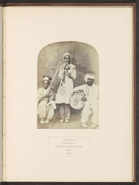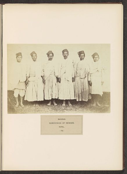 Editor: This is "Four Portraits of Pilgrims from the Dutch East Indies, in Jeddah," taken before 1888 by Christiaan Snouck Hurgronje, using the gelatin silver print process. The individuals appear stoic, each holding a paper - there is an ethnographic quality to it, almost clinical. What's your interpretation of this work? Curator: Indeed. What strikes me is the political and social context embedded within these portraits. These photographs were produced during a period of intense colonial engagement between the Netherlands and the Dutch East Indies. They straddle ethnographic study and colonial administration, as these were possibly intended to document and categorize the population during a politically unstable period in that region of the world. Editor: That makes sense. You can feel the underlying power dynamic, and their formal presentation highlights the attempt to categorize and control these individuals, robbing them of agency. I hadn’t thought of it that way at first. Curator: Precisely! This is a visual manifestation of Orientalism and raises concerns about how power relations influence the creation and dissemination of images of non-Western peoples. Even something as seemingly benign as a portrait photograph can reflect an agenda. Do you consider this work to celebrate diversity and Islamic pilgrimage? Or to serve primarily colonial administrative needs? Editor: That’s a tricky question! On the one hand, the images document an important religious journey. On the other, I suspect its primary function was about control, the institutional gaze on religious pilgrimage as a way to assess dissent towards colonial authority. I’m not sure that these competing forces can be so neatly disentangled. Curator: You are right. And what do you think of the display of these works in modern museums? Is it possible to ever fully decolonize ethnographic photography in such context? Editor: I think understanding that historical and political context is crucial, it is a stark reminder to confront uncomfortable narratives about our collections and our historical inheritance in former colonies.